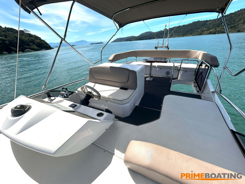 - Display GPS Garmin | Joystick de manobra | Farol controle remoto | Espaço Gourmet com grill na popa | Guincho de âncora elétrico | Flaps hidráulicos | Geladeira no cokpit | Bimini top no fly | Toldo na praça de popa | Fechamento integral do cockpit | Boiler | Porta defensas em inox | Led subaquático | Carreta de encalhe |