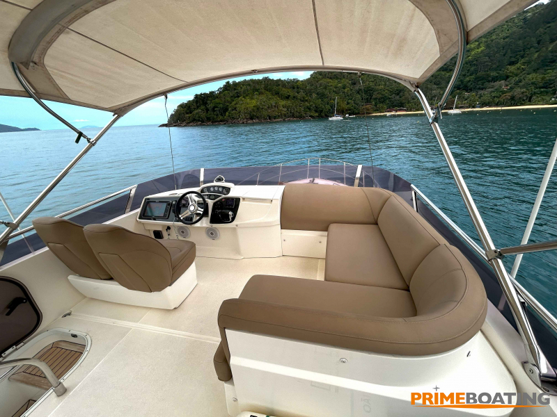 - Piloto automático Raymarine | Radar Raymarine | Display GPS Raymarine hybrid touch | Bowthruster | Farol controle remoto | Guincho de âncora elétrico | Flaps hidráulicos | Teka no cockpit e plataforma de popa | TV no salão | TV na cabine master | Bimini no fly | Antena Sky | Banco copiloto no comando do salão | Domo | Suporte em inox para bote | Carreta de encalhe |