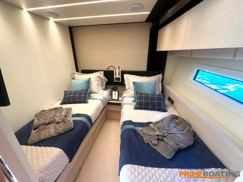 - Estabilizador | Plataforma submergível | Passarela hidráulica embutida | Bowthruster | Displays Raymarine 12” | Radar Raymarine | Piloto Automático Raymarine | Cristaleira no salão | Sistema de som FUSION | 2 Geradores Onam 21.5 kwa | Luz cortesia | Leds subaquáticos | Cozinha completa | Hard top com acionamento elétrico | Espaço gourmet no FLY | TV com lift no salão | TV nas cabines | Geladeira praça de popa | Geladeira FLY | Guincho âncora elétrico proa | 2 guinchos elétricos de popa