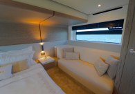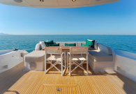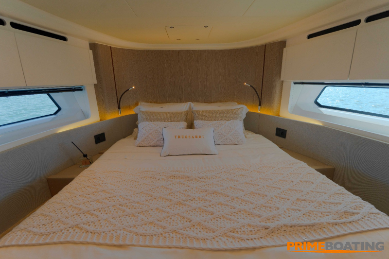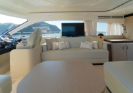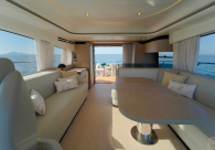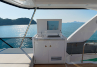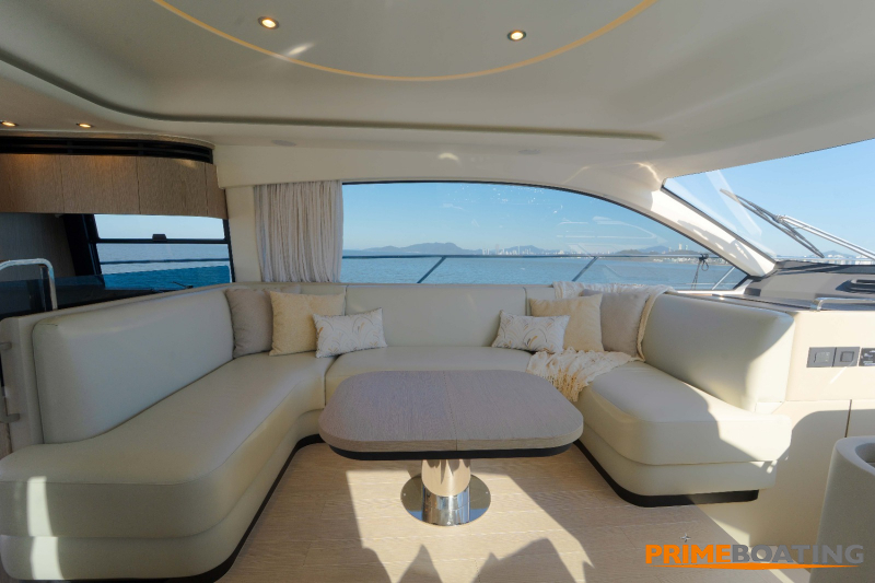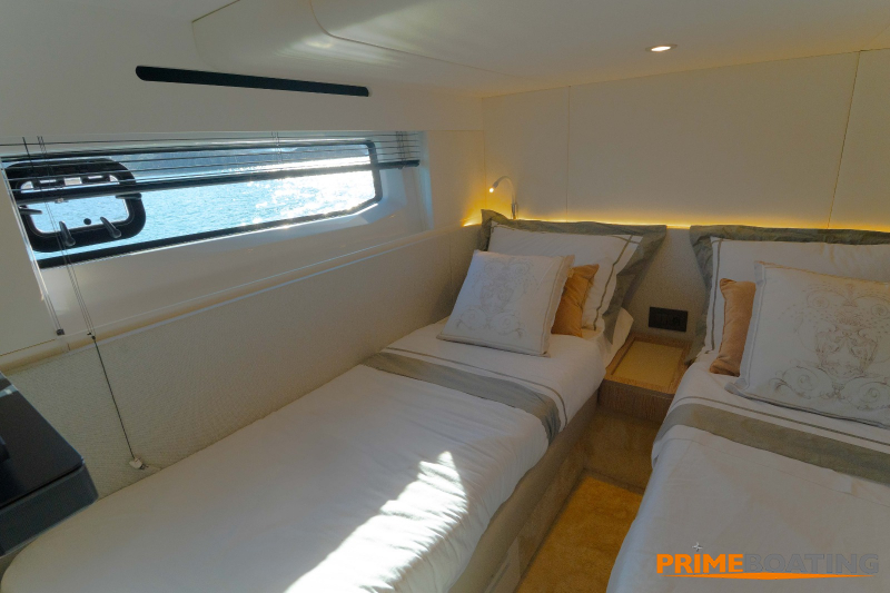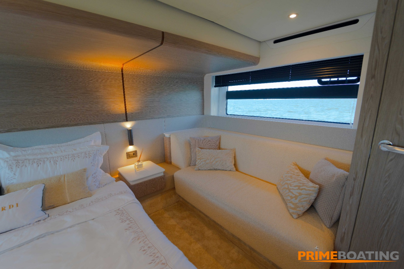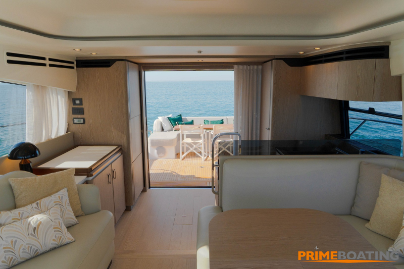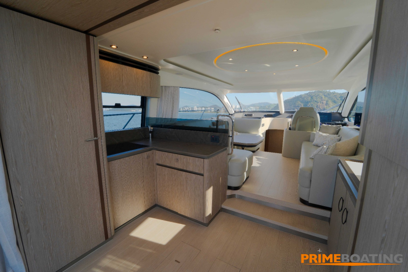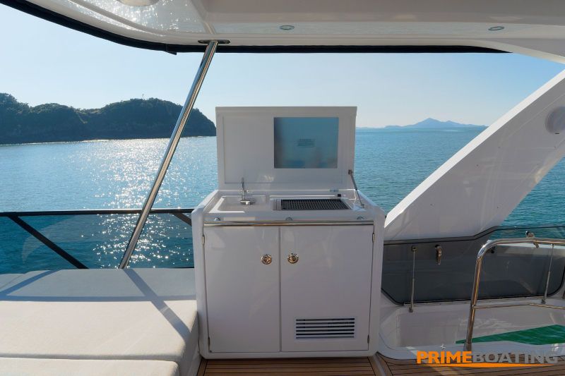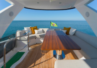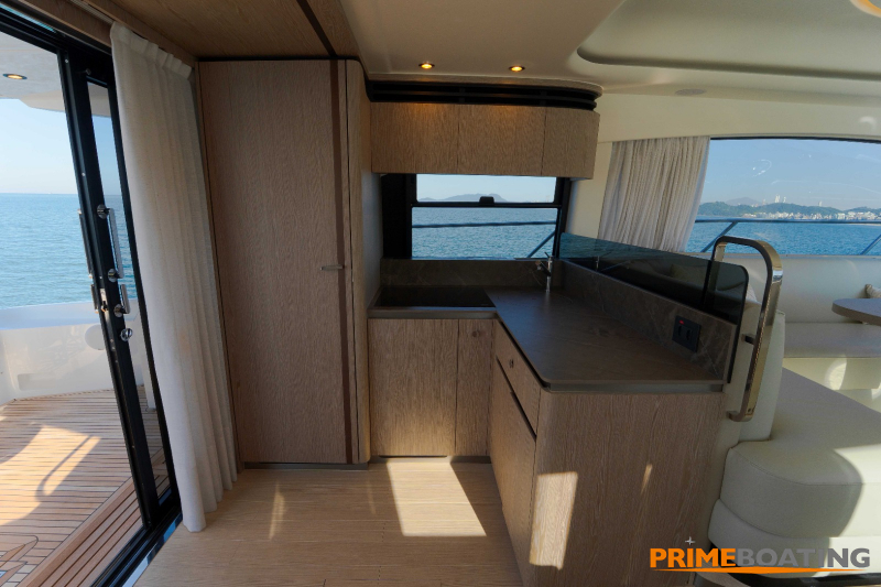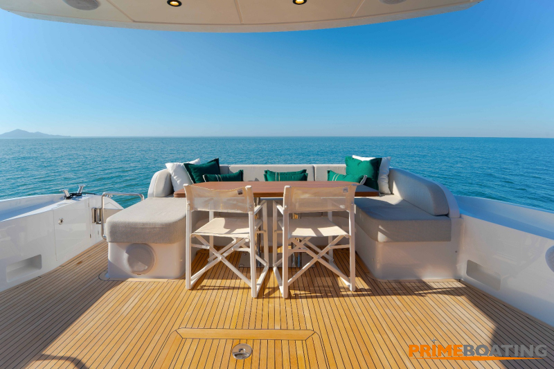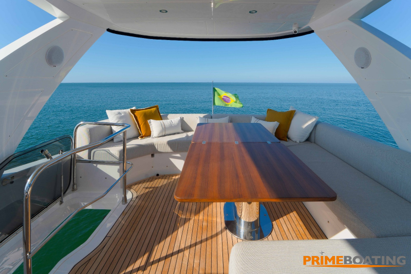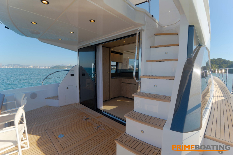 - ### Pacote Advanced | * Decor ★★★★★ (roupa de cama, toalha, colcha e almofada) | * Conduítes extras entre sala de máquinas e targa | * Predisposição para instalação de dessalinizador | * Eletrodomésticos Miele (micro-ondas e cooktop) | * Hard Top | * Capas externas (Capas de janela casaria e parabrisa + capa comando flybridge) | * Piso em madeira salão, dinete e comando central | * Mesa salão principal hi-lo | * Sofá salão lado Bombordo | * Jogo de panelas aço inox | * Pintura Anti-fouling casco | * Revestimento piso teca praça de popa e plataforma | | ## Opcionais (Itens sem custo adicional listado individualmente) | * Cadeiras de popa dobráveis mod. Nausicaa (02 unidades) | * Farol de busca elétrico com comando adicional no Flybridge | * Kit de capas para estofados externos | * Luzes submergíveis (2 unidades na popa - Marca Oceanled) | * Mastro porta-bandeira | * Móvel no Flybridge com churrasqueira (tampo em corian) | * Pacote de eletrônicos Garmin Gold | * Mesa praça de popa em teca acetinada | * Kit luminárias Scenic lights luxo | * Sistema de áudio e vídeo (Marca Fusion) | * Mesa hi-lo em teca acetinada no fly | * Luminária pedestal de proa | * Estabilizador SeaKeeper NG9 | | ## Opcionais Extras (Com Preços Individuais) | * Capa de Fechamento total Flybridge (cor cinza claro) | * Capa de Fechamento total Praça de popa (cor cinza claro) | * Cofre para cabine armador | * Luzes de manobra de popa (flexa) | * Luzes de manobra proa | * Piso em teca no Flybridge | * Piso em teca nos passadiços e praça de proa | * Revestimento anti-craca Propspeed (pods + lift plataforma) | * Suporte para bote em aço inox | * Toldo retrátil elétrico Stobag na praça de popa | * Câmeras Garmin (3 unidades): R$ 30.000,00 | * Pintura costado + convés (cor Ottanio met) | * Linha de beleza (cor Oro Bramante) | * Almofadas extras externas |
