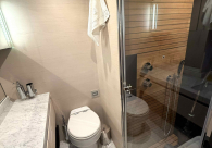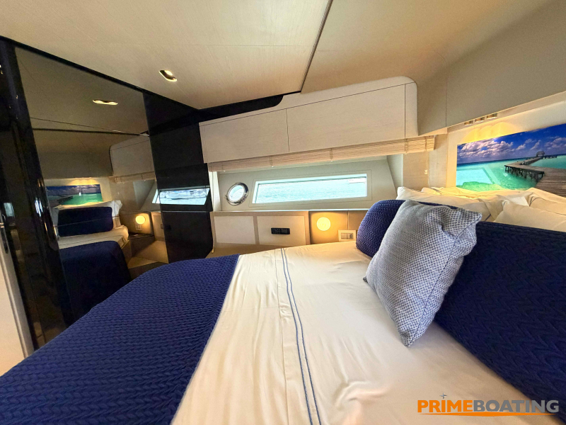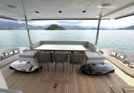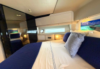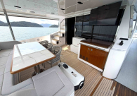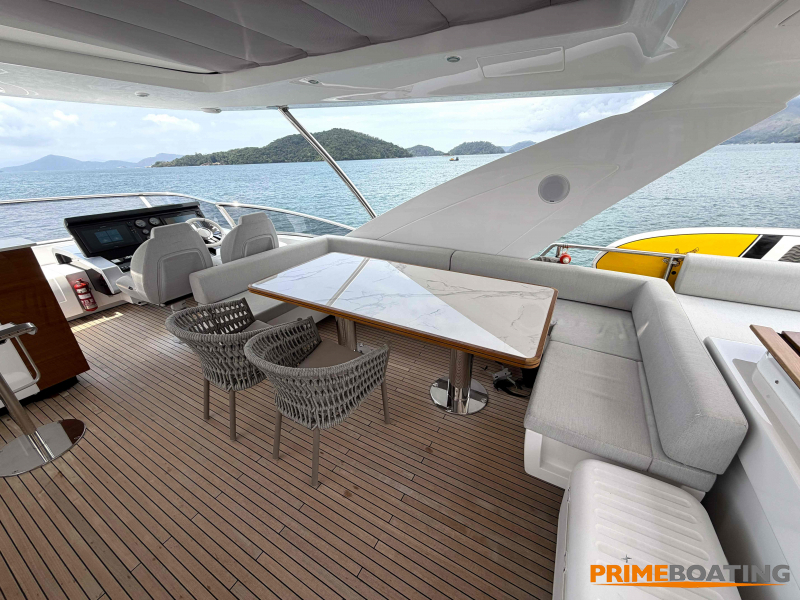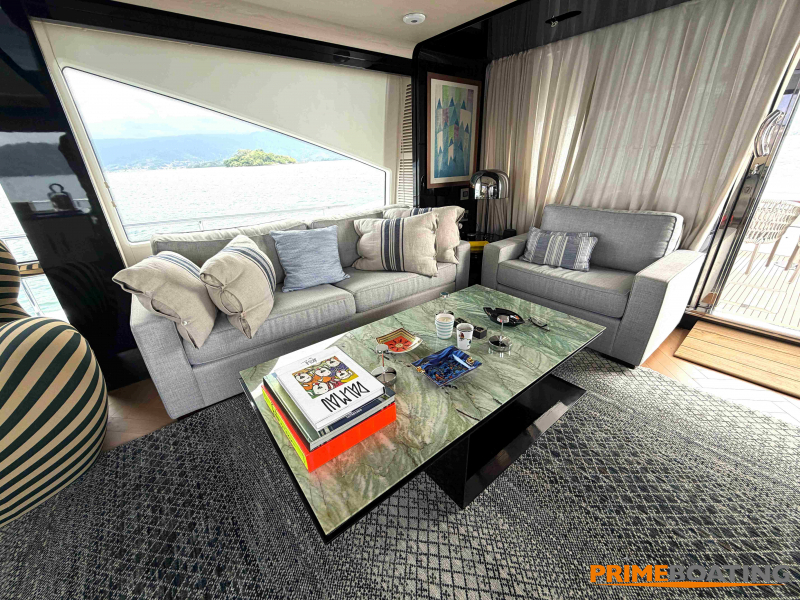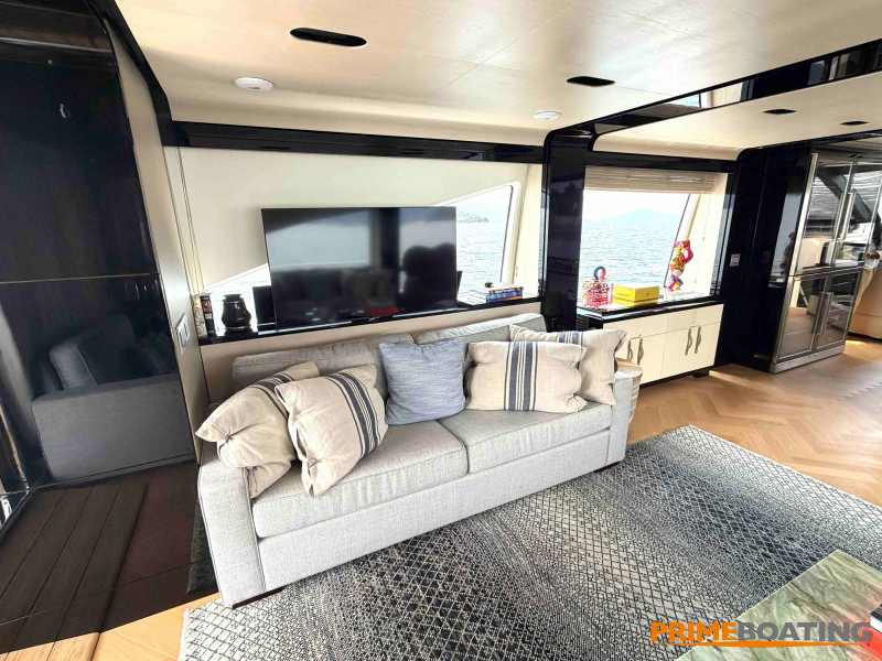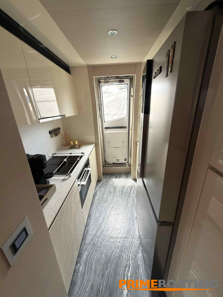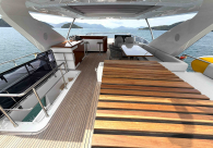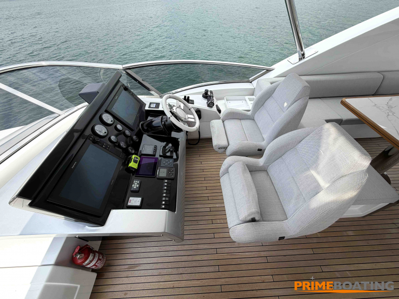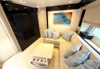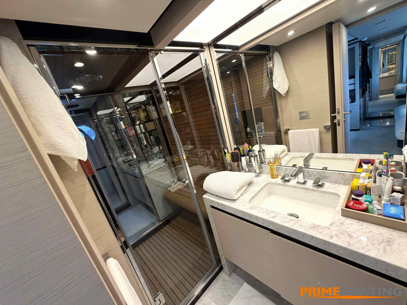- Opcionais | Hard Top | Contador de corrente com mostrador no Comando Principal e Flybridge | Revestimento em teca no piso dos passadiços laterais e proa | Cozinha fechada | Extensão do móvel do bar no flybridge com duas banquetas | Flaps estabilizadores Zerospeed | Hélice de manobra de popa (Stern thruster) | Plataforma de popa alongada | Geladeira tipo gaveta na cabine marinheiro | Passarela telescópica hidráulica com controles remotos | Micro-ondas na cabine marinheiro | Revestimento em teca no piso do flybridge | Piso em madeira no salão, dinete e comando central | Terceira cama na cabine marinheiro | Kit de dimerização dos ambientes internos | Icemaker no móvel do flybridge | Icemaker no móvel da praça de popa | Pacote de eletrônicos Raymarine Gold | Sistema de lavação extra da âncora | Kit joystick de manobra Rexroth-MAN | Adega salão | Sistema de áudio e vídeo (marca Fusion) | Kit banheiro simétrico cabine Armador (vaso sanitário e bidê) | Cadeiras de popa dobráveis (modelo Oskar — 04 unidades) | Flaps Humphree | Cofre eletrônico cabine Armador | Luzes submersíveis (04 unidades — espelho de popa) | Farol de busca elétrico com comando adicional no flybridge | Churrasqueira elétrica móvel no bar do flybridge | Churrasqueira elétrica móvel na praça de popa | Opcionais incluídos | Pintura do costado + borda do convés | Pintura externa do hardtop + pintura dos dois domos e antena | Fundo com pintura anti-incrustante | Toldo retrátil elétrico no flybridge | Toldo retrátil elétrico na praça de popa | Kit opcional: joystick de manobra + 3ª estação Rexroth-MAN | Tendalino removível manual de proa | Mesa lounge de proa em Calacatta | Mesa da praça de popa em Calacatta | Mesa do flybridge em Calacatta | Antena TV satélite STV45 Brasil | Domo vazio para antena TV satélite STV45 Brasil | Banheira de hidromassagem no flybridge | Cabine de convidados BE transformada em lounge e TV | Bar extra no flybridge sem instalações de hidráulica a BB | Reservatórios para alimentação dos icemakers com água mineral | 2 x Seakeeper NG 9000 |