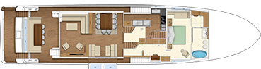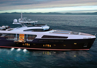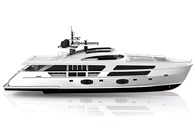 O novo tri-deck da MCP Yachts 100’ LE traz elegância e inovação graças às linhas gráficas das janelas que cobrem quase todo o convés principal e geram uma sucessão de surpresas como as grandes janelas panorâmicas na suíte master e a varanda em vidro que se abre no salão principal. Construído em alumínio, material de escolha na fabricação dos mais modernos iates de alto desempenho e baixo consumo, o 100’ LE foi criado para quem gosta de espaço, conforto e muita luz. O interior permite que o layout e decoração sejam personalizados para cada unidade, e assim o barco conta com até cinco suítes incluindo a do proprietário que está localizada no convés principal e ocupa toda a boca do iate.