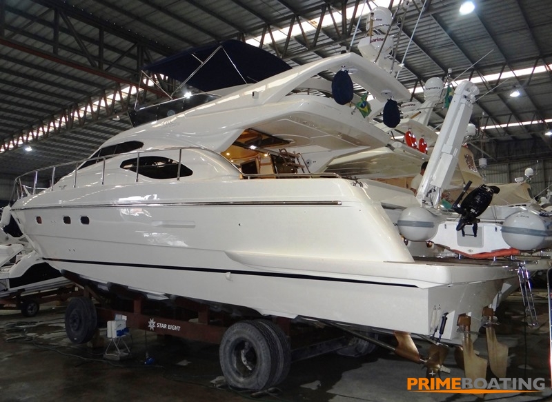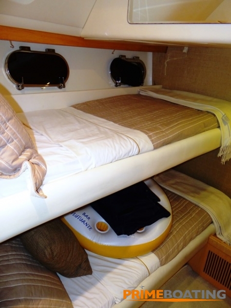 - GPS/Plotter, Radar, antena sky, tv/dvd salão e cabines, flaps, teka na praça de popa, ponte hidráulica, geladeira, fogão elétrico, microondas, farol controle remoto, carreta de encalhe com pneus