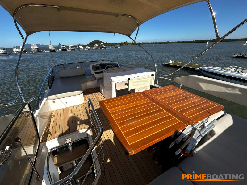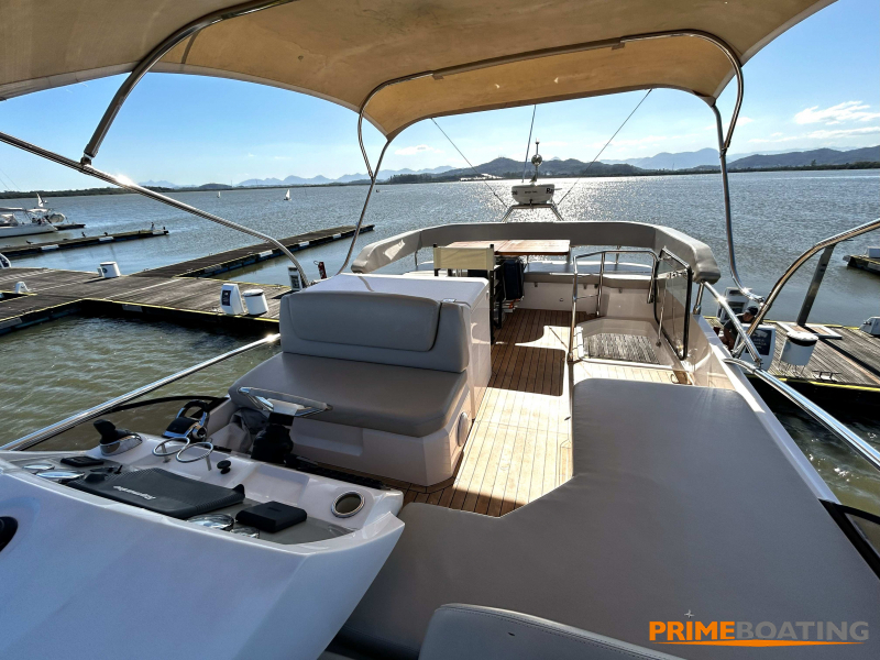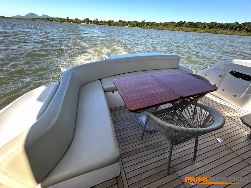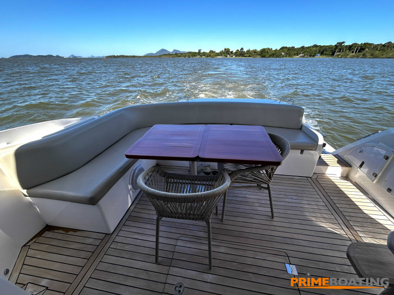 - • Display GPS Raymarine | • Radar Raymarine | • Joystick de manobra | • Farol controle remoto | • Espaço Gourmet com grill na popa | • Guincho de âncora elétrico | • Flaps hidráulicos | • TV na suíte master | • TV na cabine de convidados | • TV no salão | • Teka no fly | • Bimini top no fly | • Toldo na praça de popa | • Fechamento integral do cockpit | • Boiler | • Porta defensas em inox | • Plataforma de popa hidráulica |