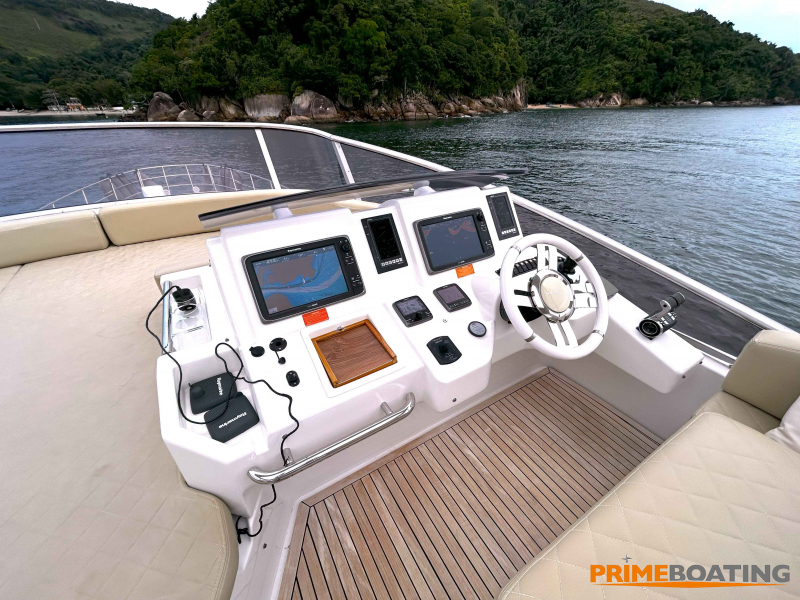 - Estabilizador | Plataforma submergível | Passarela hidráulica embutida | Bowthruster | Displays Raymarine 12” | Radar Raymarine | Piloto Automático Raymarine | Cristaleira no salão | Sistema de som FUSION | 2 Geradores Onam 21.5 kwa | Luz cortesia | Leds subaquáticos | Cozinha completa | Hard top com acionamento elétrico | Espaço gourmet no FLY | TV com lift no salão | TV nas cabines | Geladeira praça de popa | Geladeira FLY | Guincho âncora elétrico proa | 2 guinchos elétricos de popa | | |