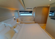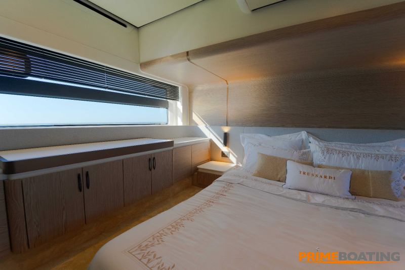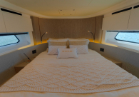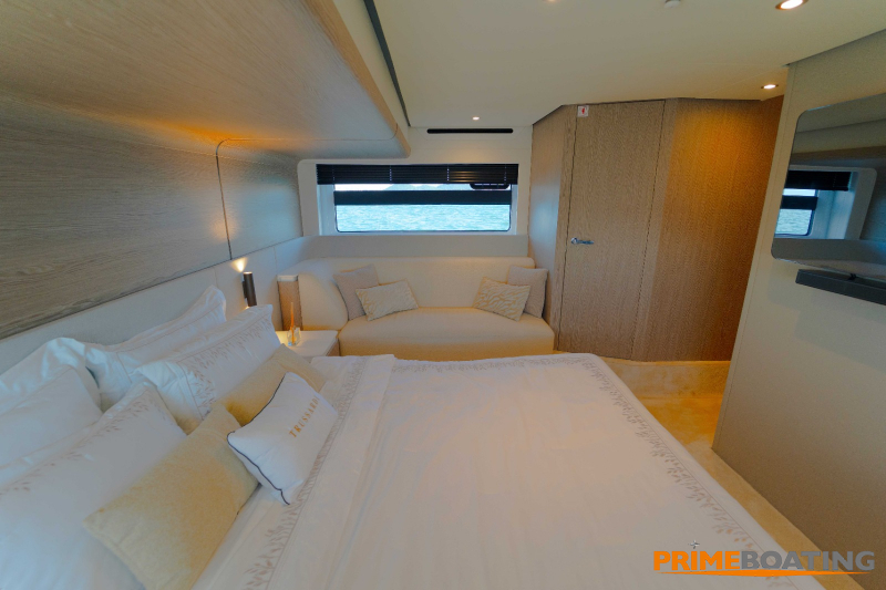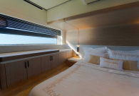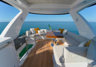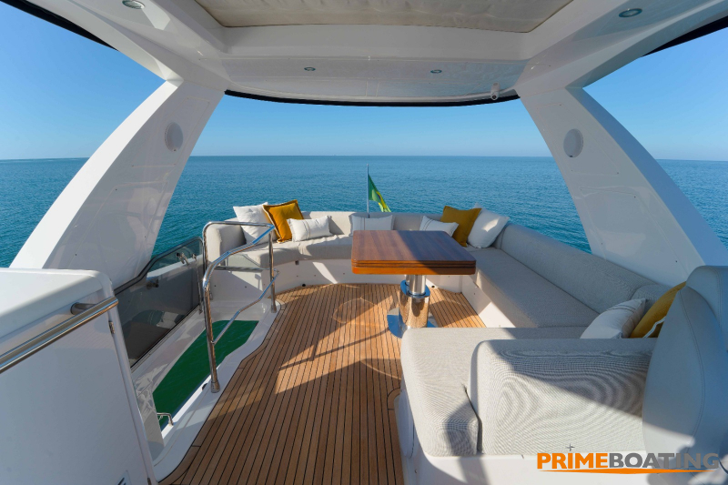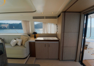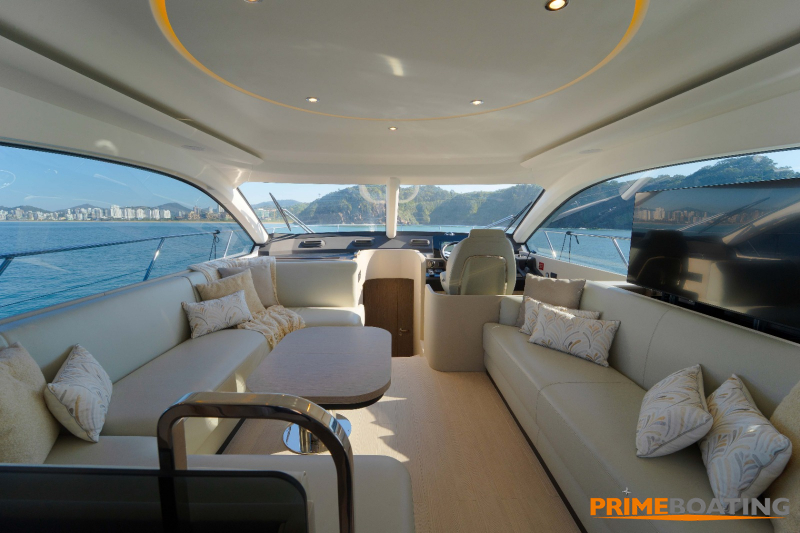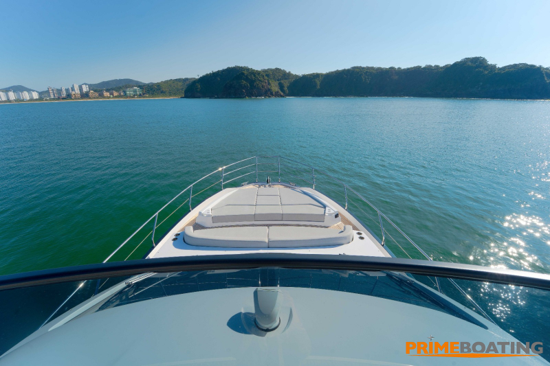 - ### Pacote Advanced | * Decor ★★★★★ (roupa de cama, toalha, colcha e almofada) | * Conduítes extras entre sala de máquinas e targa | * Predisposição para instalação de dessalinizador | * Eletrodomésticos Miele (micro-ondas e cooktop) | * Hard Top | * Capas externas (Capas de janela casaria e parabrisa + capa comando flybridge) | * Piso em madeira salão, dinete e comando central | * Mesa salão principal hi-lo | * Sofá salão lado Bombordo | * Jogo de panelas aço inox | * Pintura Anti-fouling casco | * Revestimento piso teca praça de popa e plataforma | | ## Opcionais (Itens sem custo adicional listado individualmente) | * Cadeiras de popa dobráveis mod. Nausicaa (02 unidades) | * Farol de busca elétrico com comando adicional no Flybridge | * Kit de capas para estofados externos | * Luzes submergíveis (2 unidades na popa - Marca Oceanled) | * Mastro porta-bandeira | * Móvel no Flybridge com churrasqueira (tampo em corian) | * Pacote de eletrônicos Garmin Gold | * Mesa praça de popa em teca acetinada | * Kit luminárias Scenic lights luxo | * Sistema de áudio e vídeo (Marca Fusion) | * Mesa hi-lo em teca acetinada no fly | * Luminária pedestal de proa | * Estabilizador SeaKeeper NG9 | | ## Opcionais Extras (Com Preços Individuais) | * Capa de Fechamento total Flybridge (cor cinza claro) | * Capa de Fechamento total Praça de popa (cor cinza claro) | * Cofre para cabine armador | * Luzes de manobra de popa (flexa) | * Luzes de manobra proa | * Piso em teca no Flybridge | * Piso em teca nos passadiços e praça de proa | * Revestimento anti-craca Propspeed (pods + lift plataforma) | * Suporte para bote em aço inox | * Toldo retrátil elétrico Stobag na praça de popa | * Câmeras Garmin (3 unidades): R$ 30.000,00 | * Pintura costado + convés (cor Ottanio met) | * Linha de beleza (cor Oro Bramante) | * Almofadas extras externas |