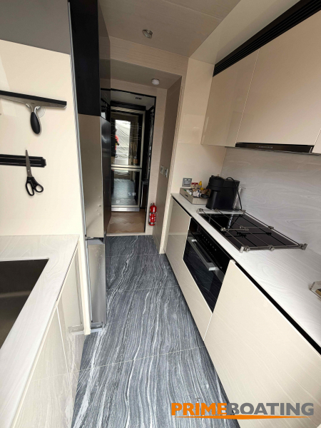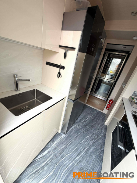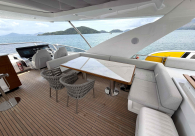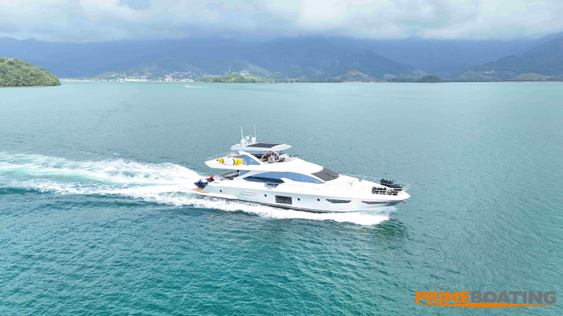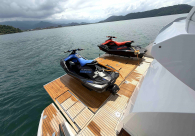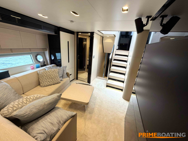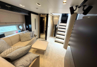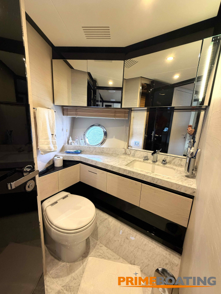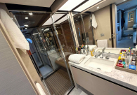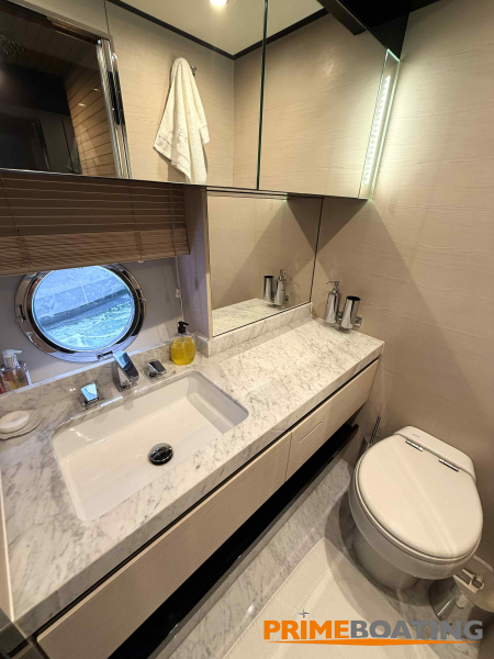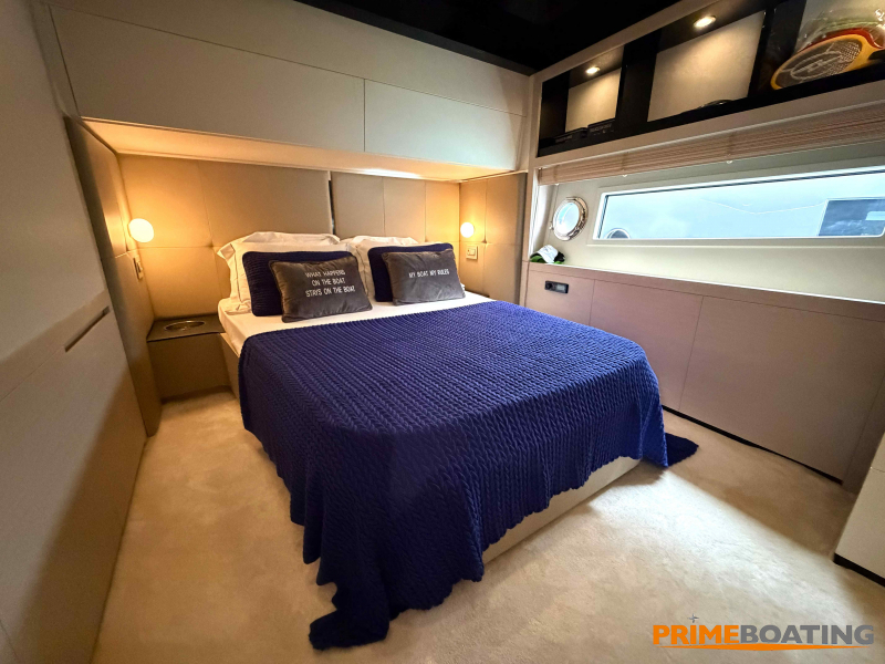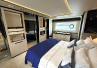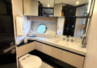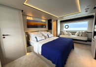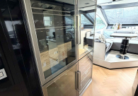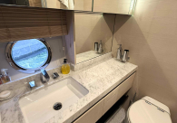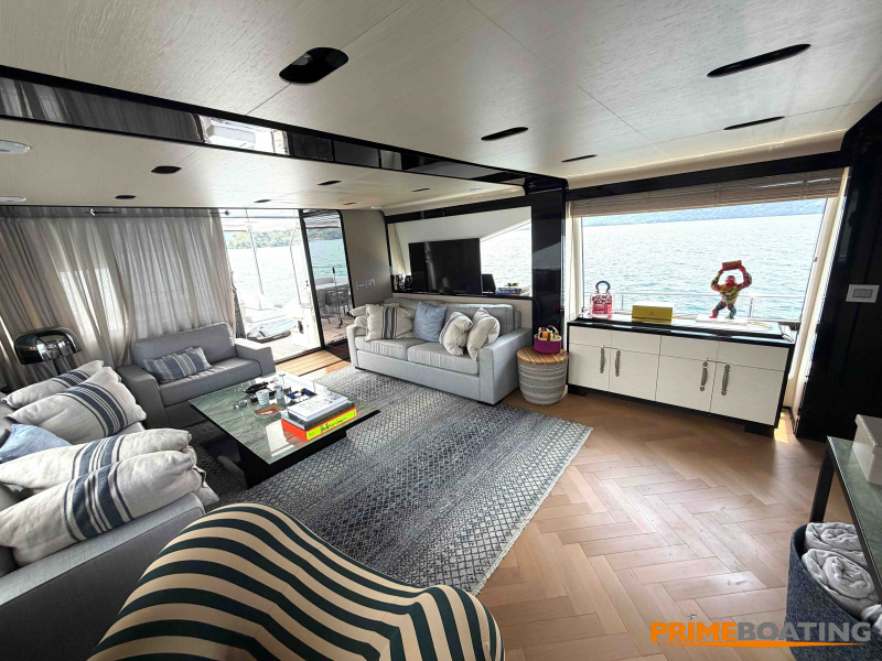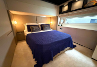 - Opcionais | Hard Top | Contador de corrente com mostrador no Comando Principal e Flybridge | Revestimento em teca no piso dos passadiços laterais e proa | Cozinha fechada | Extensão do móvel do bar no flybridge com duas banquetas | Flaps estabilizadores Zerospeed | Hélice de manobra de popa (Stern thruster) | Plataforma de popa alongada | Geladeira tipo gaveta na cabine marinheiro | Passarela telescópica hidráulica com controles remotos | Micro-ondas na cabine marinheiro | Revestimento em teca no piso do flybridge | Piso em madeira no salão, dinete e comando central | Terceira cama na cabine marinheiro | Kit de dimerização dos ambientes internos | Icemaker no móvel do flybridge | Icemaker no móvel da praça de popa | Pacote de eletrônicos Raymarine Gold | Sistema de lavação extra da âncora | Kit joystick de manobra Rexroth-MAN | Adega salão | Sistema de áudio e vídeo (marca Fusion) | Kit banheiro simétrico cabine Armador (vaso sanitário e bidê) | Cadeiras de popa dobráveis (modelo Oskar — 04 unidades) | Flaps Humphree | Cofre eletrônico cabine Armador | Luzes submersíveis (04 unidades — espelho de popa) | Farol de busca elétrico com comando adicional no flybridge | Churrasqueira elétrica móvel no bar do flybridge | Churrasqueira elétrica móvel na praça de popa | Opcionais incluídos | Pintura do costado + borda do convés | Pintura externa do hardtop + pintura dos dois domos e antena | Fundo com pintura anti-incrustante | Toldo retrátil elétrico no flybridge | Toldo retrátil elétrico na praça de popa | Kit opcional: joystick de manobra + 3ª estação Rexroth-MAN | Tendalino removível manual de proa | Mesa lounge de proa em Calacatta | Mesa da praça de popa em Calacatta | Mesa do flybridge em Calacatta | Antena TV satélite STV45 Brasil | Domo vazio para antena TV satélite STV45 Brasil | Banheira de hidromassagem no flybridge | Cabine de convidados BE transformada em lounge e TV | Bar extra no flybridge sem instalações de hidráulica a BB | Reservatórios para alimentação dos icemakers com água mineral | 2 x Seakeeper NG 9000 |