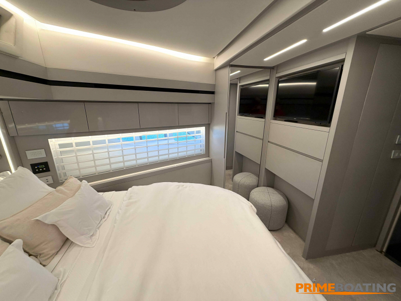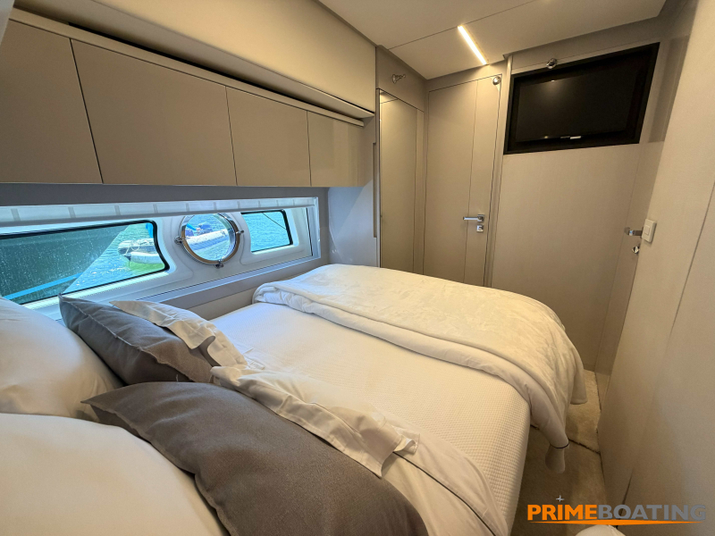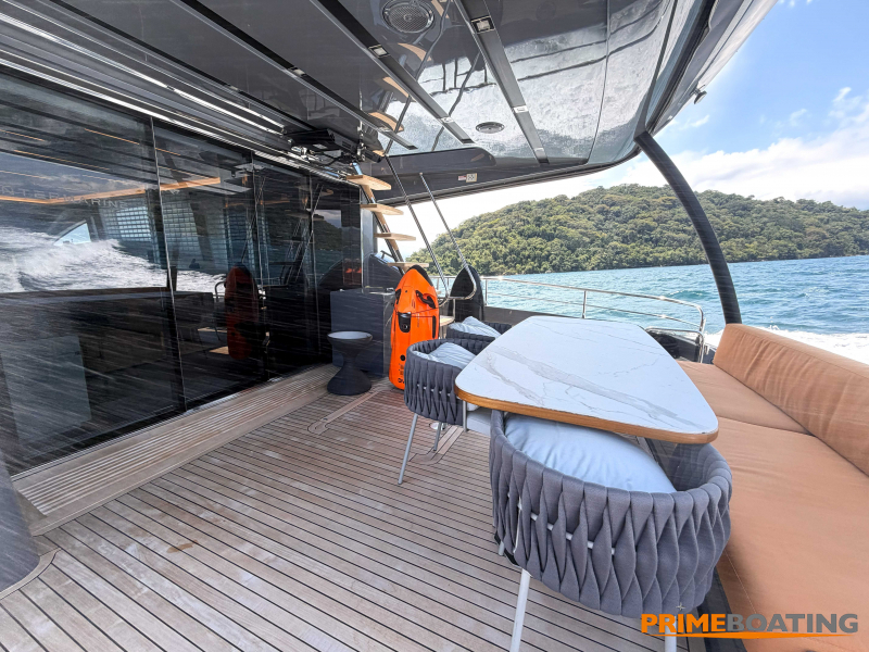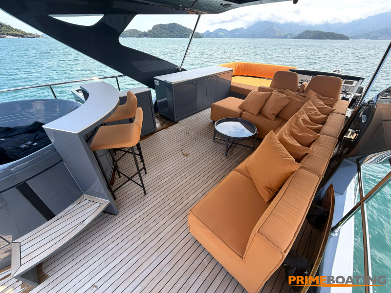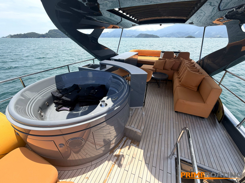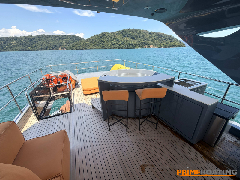 - Estabilizador Side Power | Bow thruster | Stern thruster | 2 x Gerador Onam | Banheira de hidromassagem no fly | Plataforma de popa estendida | Piso de Teka no fly | Piso de Teka no cockpit | Tv com suporte no cockpit | Ice maker no fly | Sistema de câmeras | Som com amplificador Denom | GPS Raymarine Hybrid touch | Radar Raymarine | Piloto Automático | Antena Sky | Domo | Antena Starlink | TV com lifting no salão | TVs nas cabines | Catracas elétricas no cockpit | Sistema de gerenciamento Boning |